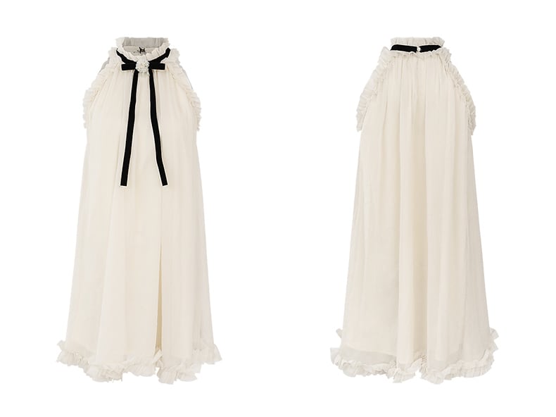 【Since Then】キュート リボン フリル ホルダーネック Aラインワンピース ドレス ショート丈